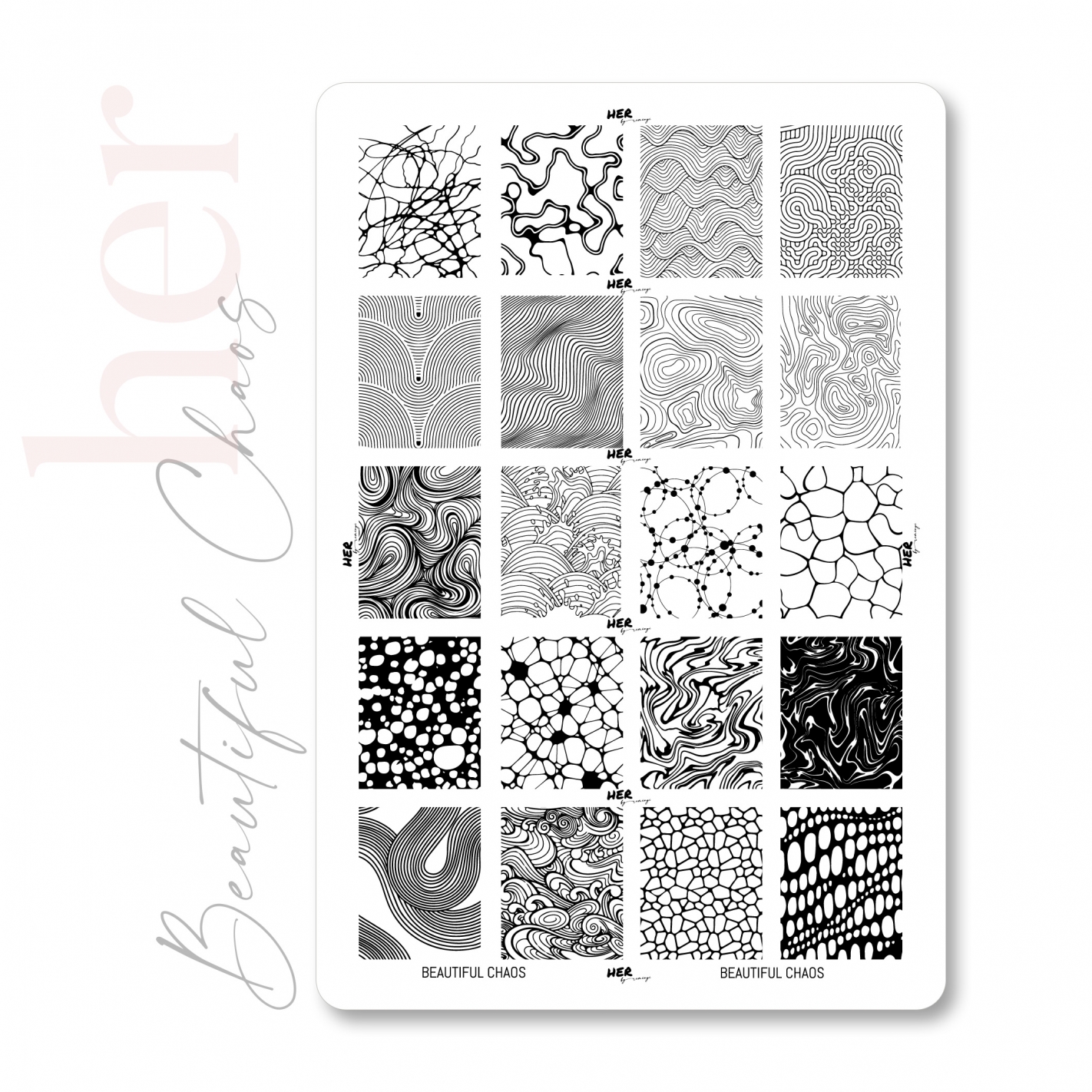 One of the key features of HER stamping plates is their unique design,   quality,  precision and attention to detail.   Because we like to express our creativity and bring joy to your face, we have created unique models for you. These plates are made of the best quality materials that will ensure their durability.