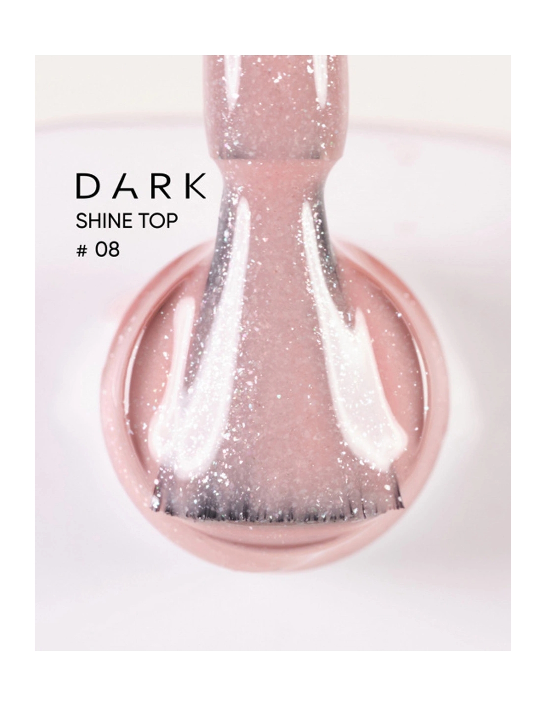 There are no more items in your cart DARK TOP NO WIPE is a semi-transparent glossy top coat with glitter, without a sticky layer, and with a UV filter, designed for gel and gel polish applications.