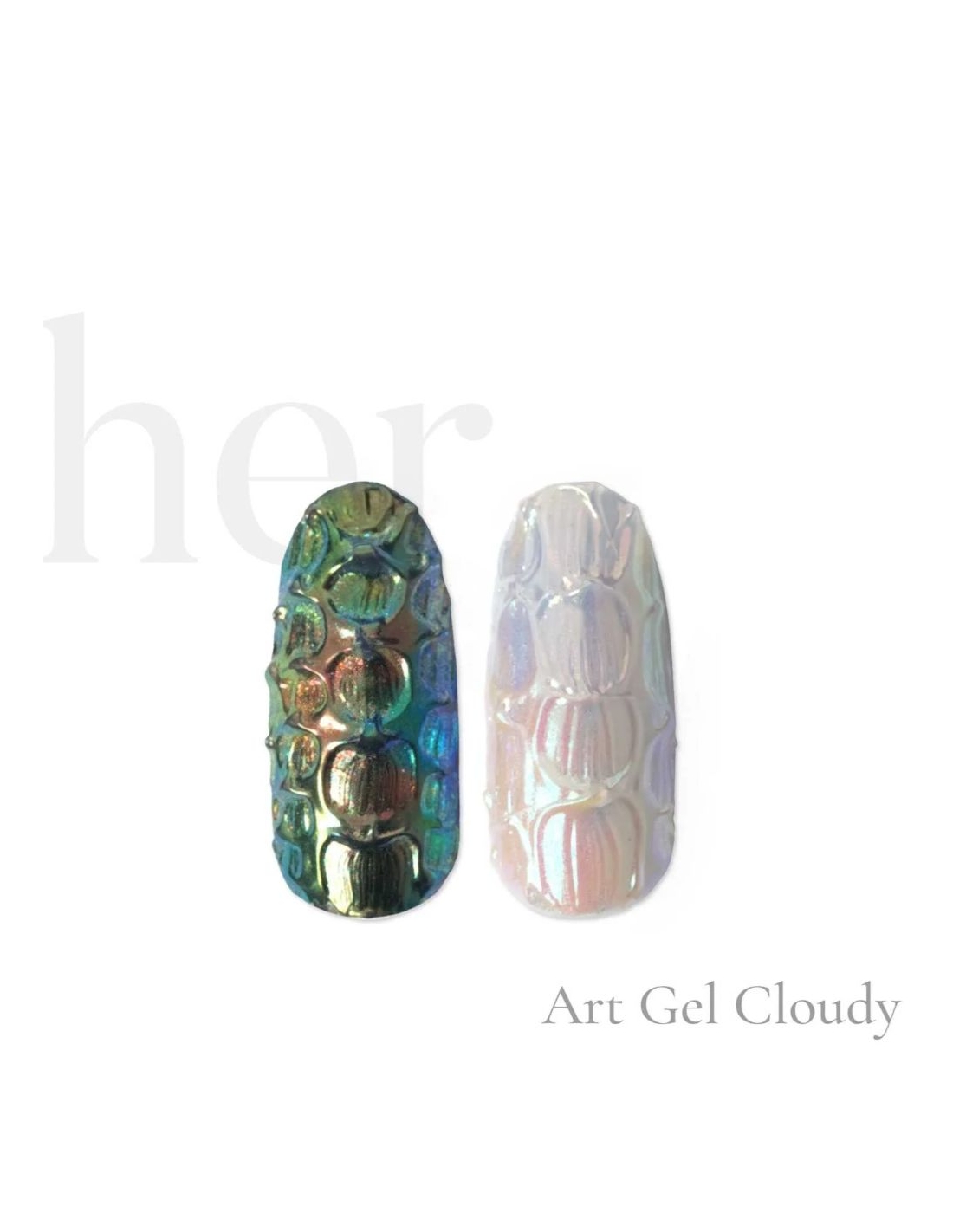There are no more items in your cart HER Art Gel – Cloudy is the perfect choice for creating impactful 3D nail designs and artistic details. Its fluffy, viscous and ultra-stable texture offers full control, allowing you to sculpt precise elements and work effortlessly with pigments, glitter and other decorations for a personalised, sophisticated result.