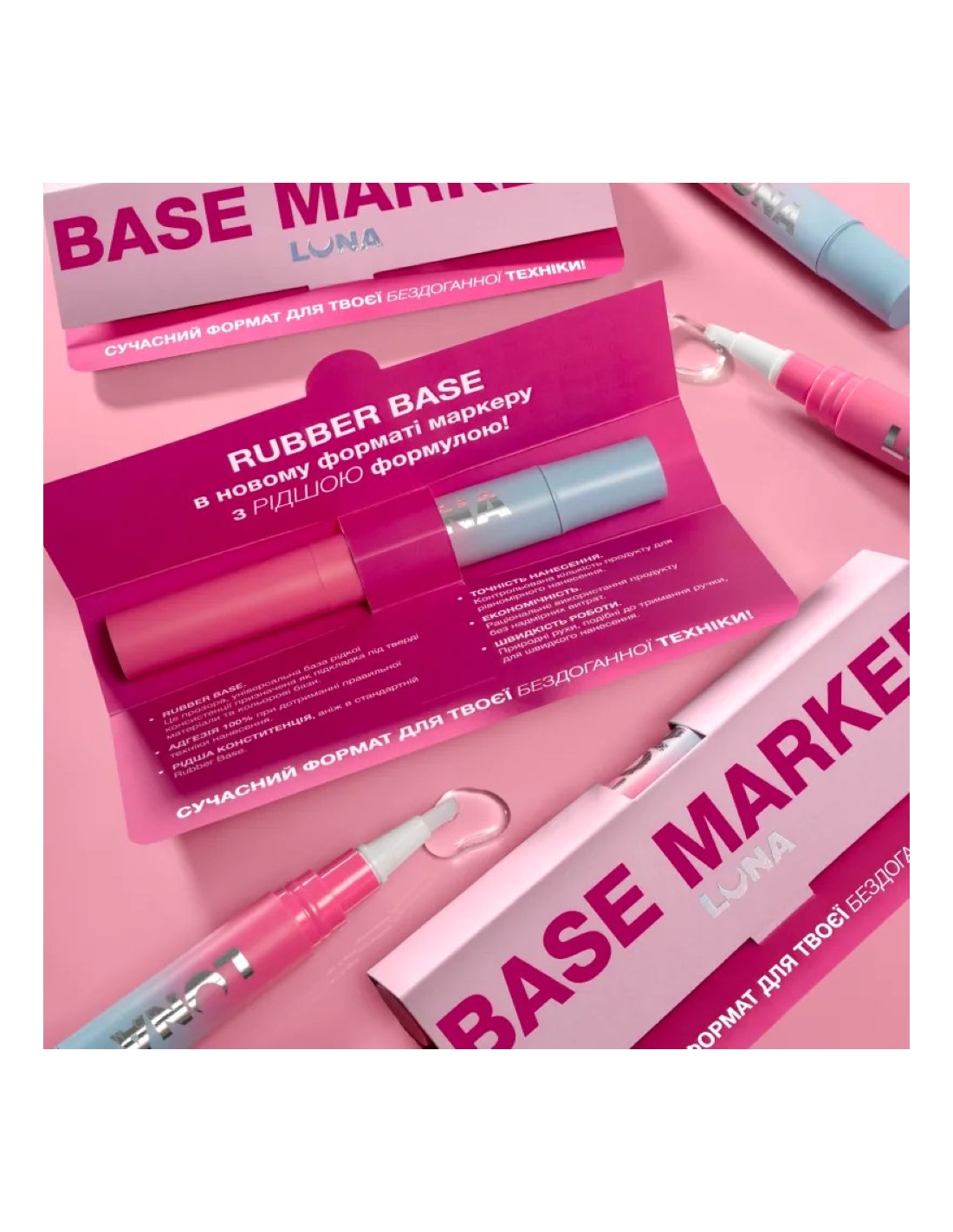The LUNAmoon Base Marker introduces a new way to apply your base coat with speed, precision, and comfort. This innovative pen-style applicator delivers a thinner, transparent rubber base formula designed for flawless, even coverage. Ideal as a foundation under color bases or solid building materials, it offers full control with minimal waste.