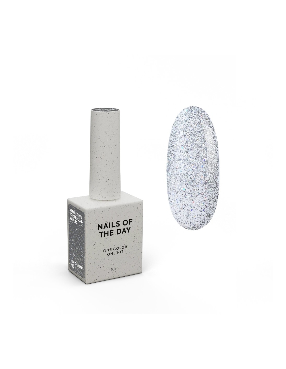 NAILSOFTHEDAY Reflective Top Holographic is a no-wipe holographic top coat that transforms any manicure into a dazzling light display. Ultra-fine, high-quality holographic shimmer reflects every particle of light, creating a bright, even sparkle in both natural and artificial lighting.
