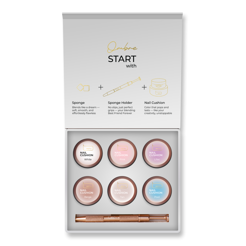 The HEYLOVE Nail Cushion Set includes 6 vibrant shades, sponge applicators, and a sponge holder – everything you need for flawless ombré designs. The soft cushions blend smoothly for seamless transitions, while the pigmented formula ensures lasting colour and creative flexibility.