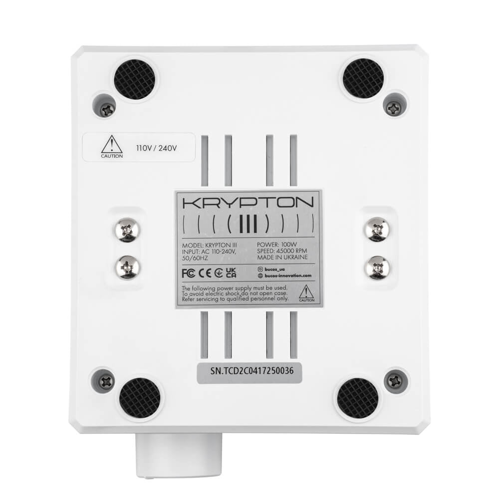 A true revolution in professional equipment. KRYPTON III pairs a 100W motor with rock-stable speeds up to 45,000 RPM. Built for high-volume pedicure and podiatry, it delivers precision, comfort, and durability in every session.
