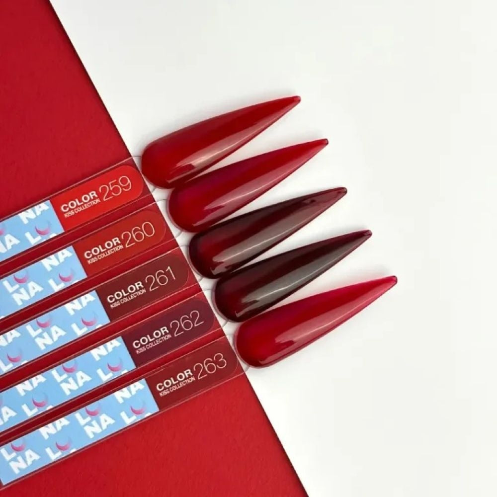 LUNAmoon Kiss Collection is a passionate set of gel polishes in 13ml dedicated to the timeless allure of red. With five seductive shades, this collection offers everything from classic scarlet to deep burgundy, making it a must-have for every nail artist who loves elegance with attitude.