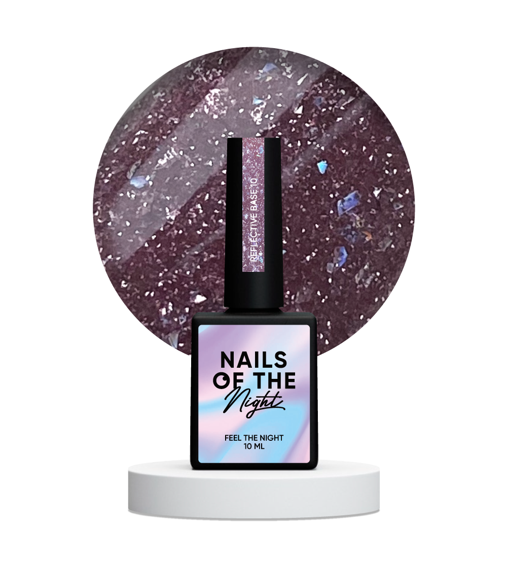 NAILSOFTHENIGHT Reflective base is a camouflage reflective base with shimmer for the nail plate. Shimmer sharply reflects every particle of light, micro-grained, high quality, sparkles brightly. Thanks to the modern formula, it perfectly aligns and creates an ideal architecture of the nail plate. NAILSOFTHENIGHT Reflective base has high plasticity, medium consistency. There are no toxic substances, it has no unpleasant smell. Resistant to mechanical impact.