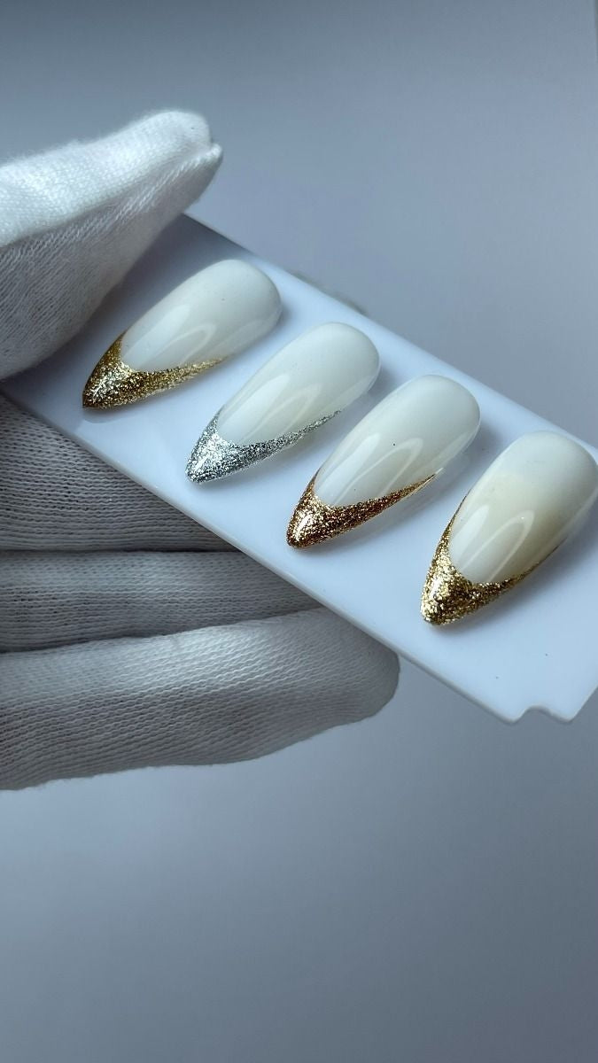 ReformA Painting Gel Hema Free No Wipe is a highly pigmented gel without a sticky layer, containing shimmering mica particles. It can be used for fine line design, French manicures, and as a solid nail color. The product is available in four of the most popular gold and silver shades: